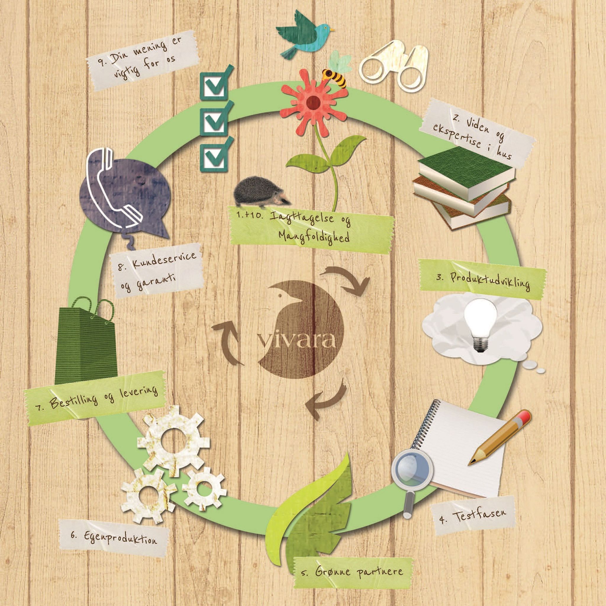 Vivara udvikler og fremstiller selv de fleste produkter. På denne måde kan vi lettere følge fremstillingsprocessen og sikre os kvaliteten af produkterne. Næsten alle produkterne fås alene hos Vivara. På vores egen foderfabrik afstemmes hver en foderblanding omhyggeligt efter dyrenes behov. Vi køber selv alle ingredienserne for at sikre os, at vores foder kun indeholder de bedste råvarer.